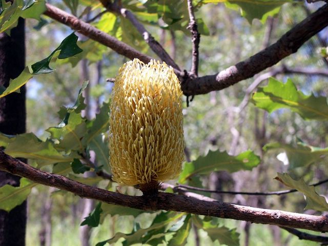 - The first photo shows our only banksia. It flowers mainly during the Wet, but some flowers linger on into Bangkerreng.