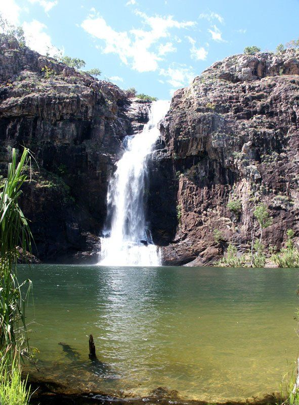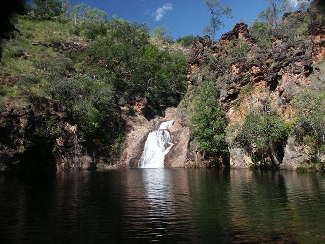 Look at the two photos on the left. Both show Gunlom Falls in southern Kakadu. The near one was taken in April, the far one in June. People who come in april get a much better view than those who come in June.