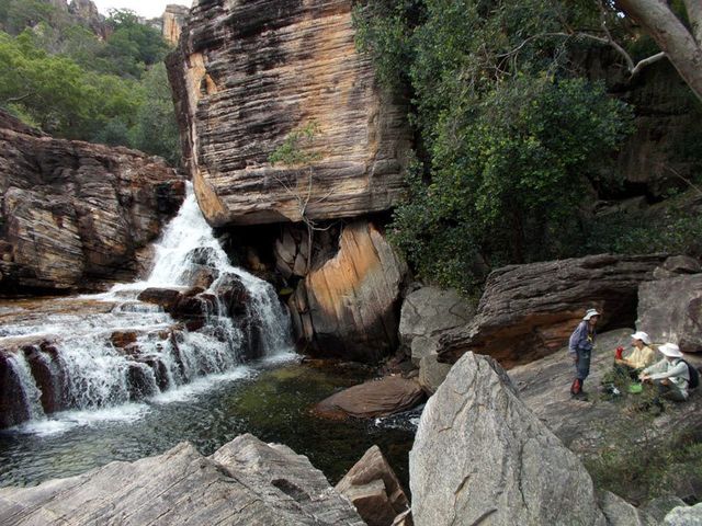 Once above the chute, the ground levels out and the walking becomes somewhat easier. We stop to visit art sites, photograph the flowers, climb up for views and relax by pools for swims as we work our way up to our second camp.
