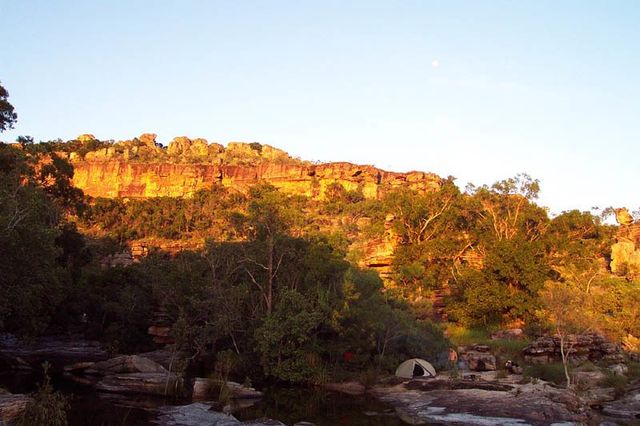 Our first campsite is usually only about three kilometres from Gubara Pools. If we arrive early, there are plenty of places for the energetic to climb up for an afternoon view.