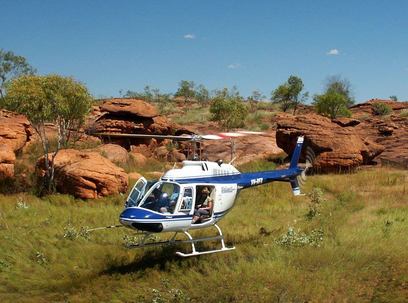 From the Bungles airstrip, we fly to the start of our walk by helicopter.