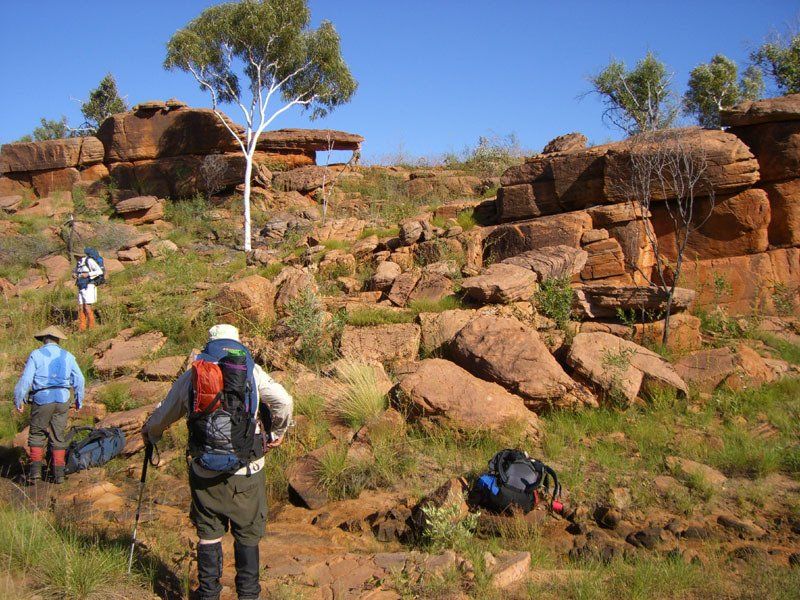 Without packs - some walks include dense sections of sharp and/or sticky spinifex, gaiters essential, long trousers recommended.