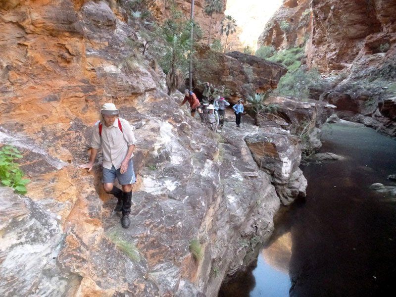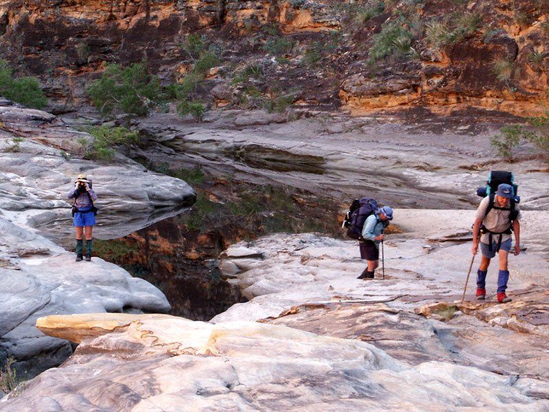 - some walks include dense sections of sharp and/or sticky spinifex, gaiters essential, long trousers recommended.