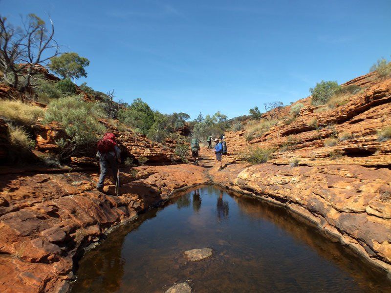 The famous Kings Canyon is a tiny part of this large National Park. In keeping with the wishes of the Aboriginal traditional owners, we will base our walk on the Giles Track, making only minor detours to have a look at interesting things we find along the way.