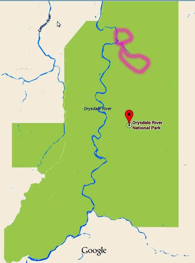 rom the junction, we follow the Drysdale north to Solea Falls, repeating the most spectacular part of Drysdale 1, but on the opposite side of the river. Solea will be our most spectacular campsite.