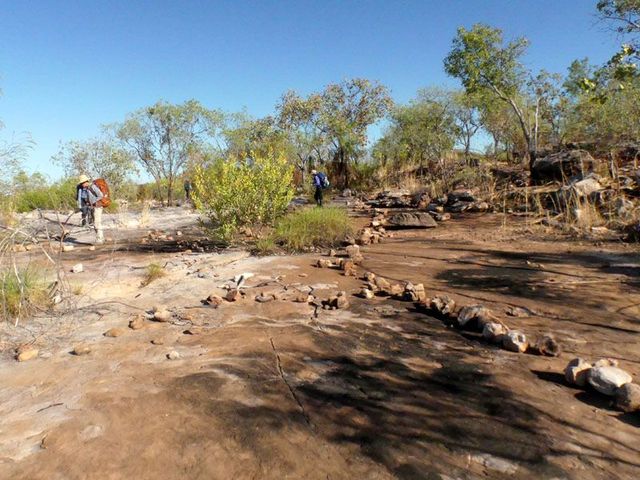 In 1992 (pre-GPS), two of our guides were exploring part of this creek and came across an an Aboriginal stone arrangement. In spite of several visits to this creek over the years, we only found it again in 2022. Well worth the effort.