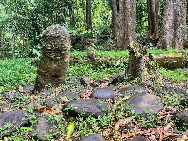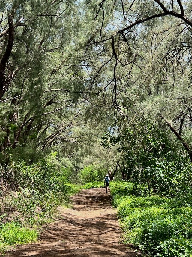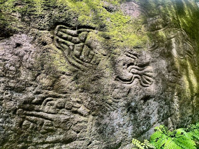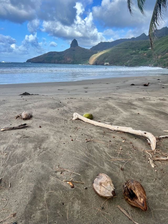 We will visit Tahuata, the island just south of Hiva Oa. It's a short boat ride across the turquoise ocean waters to the small village of Hapatoni. From there, we will walk along a road that winds through the forest to the village of Vaitahu.