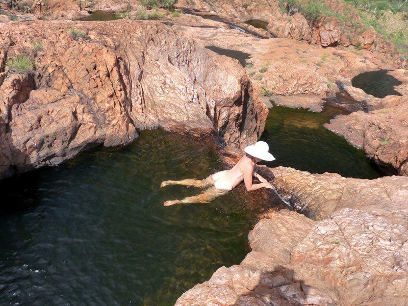 A boat ride up the Ord River brings us to a drop off on Cooliman Creek. A relatively flat walk of about 4 km gets us to the first of the many waterfalls and pools we get to enjoy on this walk.