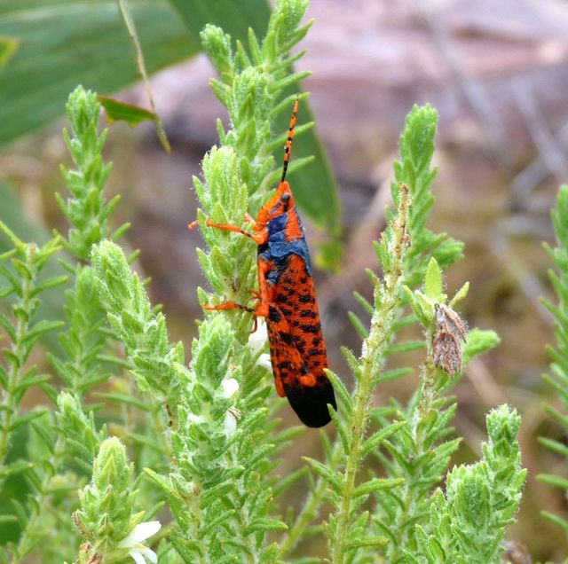 The photos here show a sunset view from our campsite below Hill 420 and a Leichhardt grasshopper. The Leichhardt grasshopper is named after explorer Ludwig Leichhardt, who first discovered and wrote about this species in 1845. Modern science only rediscovered it in the 1970s. The Jawoyn and Gundjeibmi people of Western Arnhem Land call the grasshoppers Alyurr, children of the lightning man, Namarrgon, a powerful ancestral being. It is Australia's most brightly coloured grasshopper and one of the most spectacular in the world. Their appearance is a sign that the wet season is on its way.