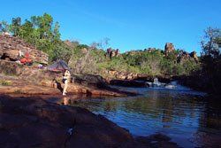 The walks to Hill 420, the highest point on the Arnhem Escarpment, give spectacular views as well as showing you the best waterfall in the area. Although it is relatively long, the walk across the plain to the escarpment is flat and relatively easy. The rewards are more than worth the effort.