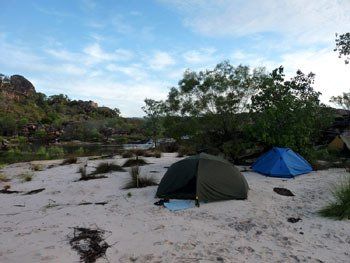 Althought Gubara Springs flows all year, the upper reaches of Baroalba Creek stop flowiing fairly early in the dry season. This is why we only visit the area in the wet and early dry seasons the two photos here show one of our wet season campsites and a sunset we saw while we were there.