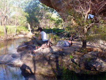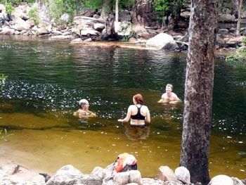 A three kilometre walk along an old 4WD track takes you from the car park to the pool. Most people have a swim, then turn around and go back to their vehicles. Only a few carry packs and visit the wonder that lies beyond.