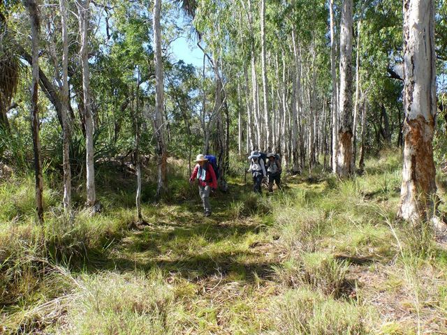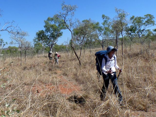Much of the walking is through relatively flat, open woodland with a grassy understorey. Some short sections of grass may hide a broken rocky surface where you will have to be particularly careful. In 2021, we had one short section of very thick scrub we had to bash our way through. The vegetation can vary from year to year depending on when last burnt.