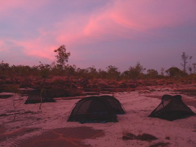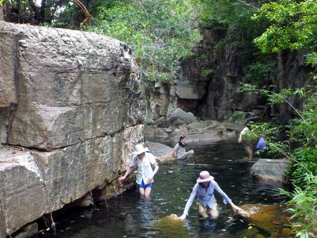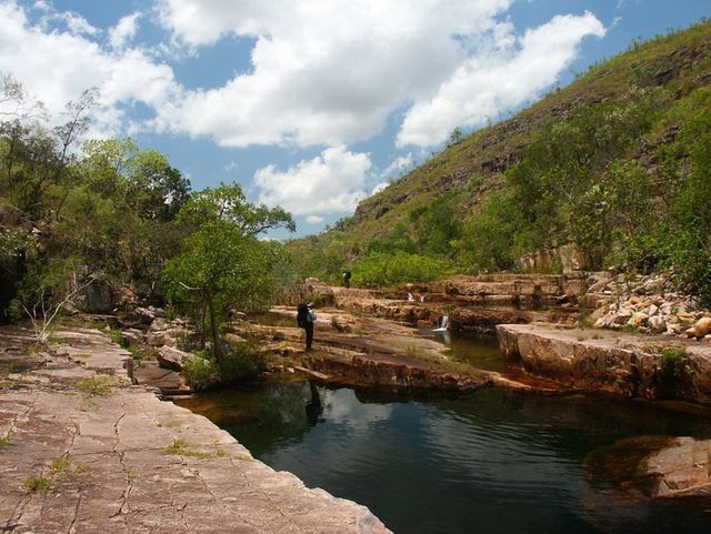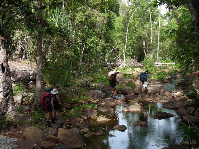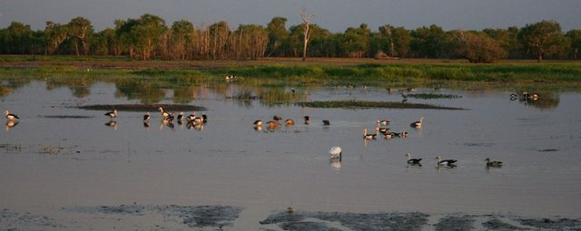 The photo at right was taken on one of our Build Up walks in Kakadu in late October. We could see the storm building. Later that night, we could see lightning in the distance. We did not get a single drop of rain. While it is likely to rain somewhere nearly every day in the later part of the build Up, the rain comes as short, sharp, isolated storms. A given location is likely to get rain on only a few days. On average, the weather station in Jabiru in northern Kakadu gets rain only 3 days in October and 12 in November. Further south, it is drier.