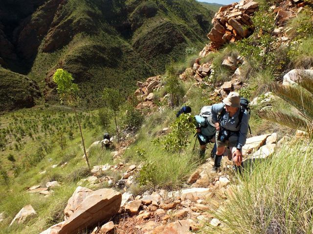 There will be broken rock in sections, some flat and sandy sections and some thick scrub. The hardest walking will be done without packs.