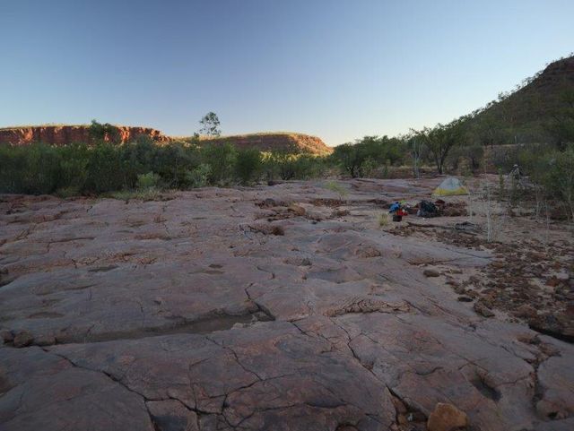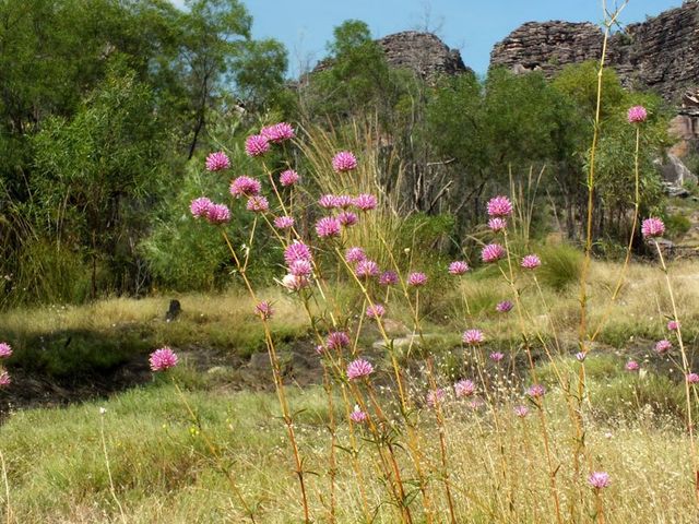 Varies from year to year depending on when last burnt. In May, most of the spear grass has finished seeding and dried out. Based on past experience, we expect some sections of thick scrub and or spinifex which will make some days much harder than others. There are always flowers in bloom.