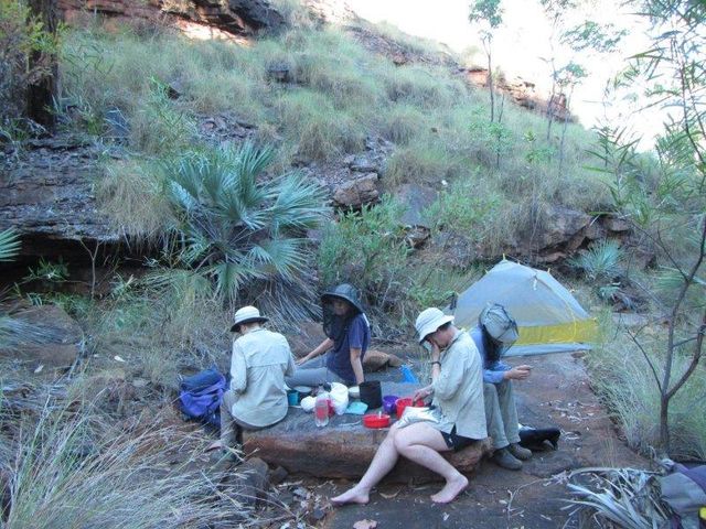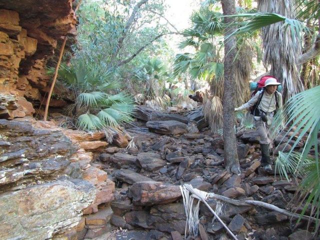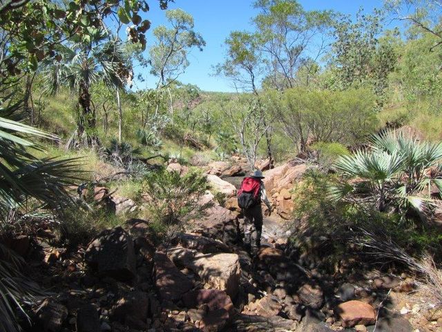 Some of the walking is fairly easy. Some has thick scrub and is quite slow. Gregory is much drier than Kakadu or Litchfield so there aren’t a huge number of waterholes on the small creeks, but occasionally we even find a small flowing waterfall .