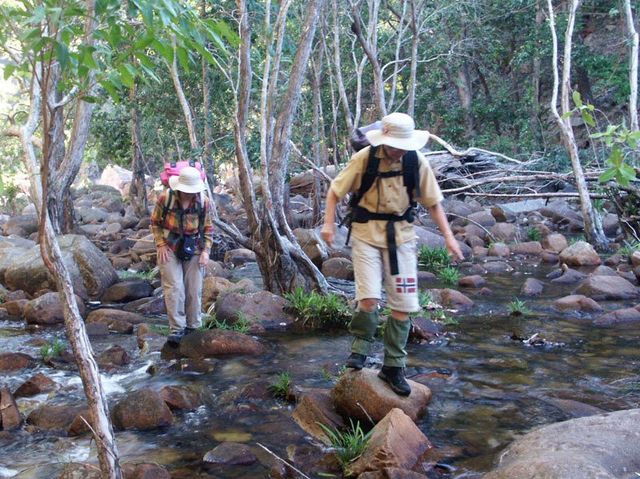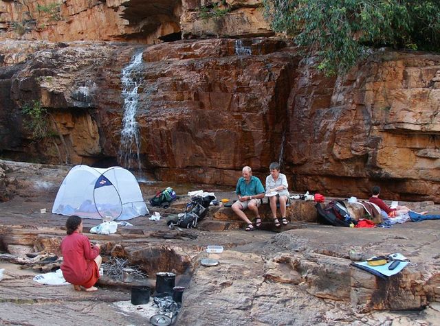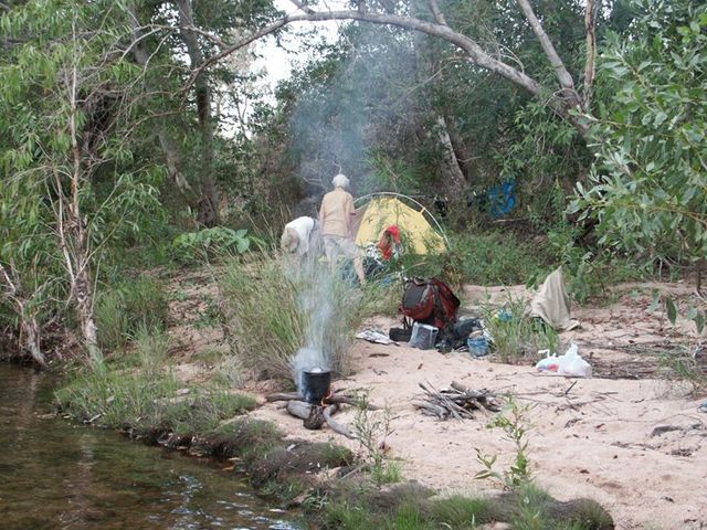The drive from Darwin to the start of the walk is over 300 kilometres, including about 45 kilometres on a 4WD track, so rough that it can take over two hours on its own. A relatively flat walk of about 5 km brings us to our first camp. We stay here for two nights.