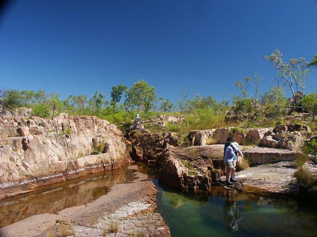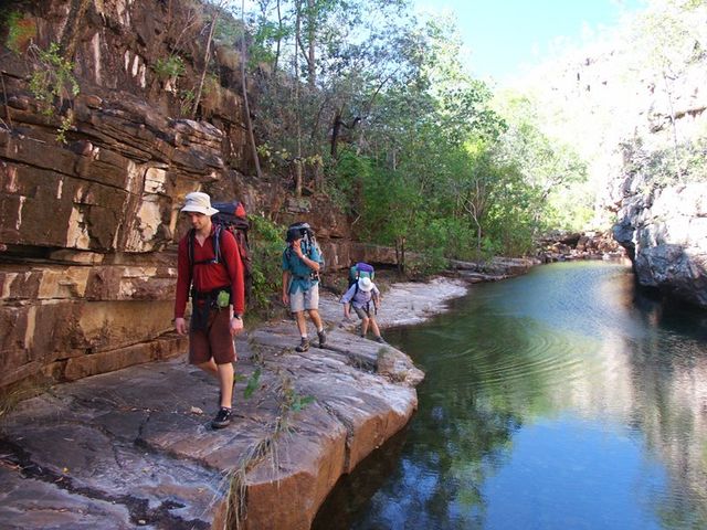 This walk combines a portion of our normal Graveside route, part of our Kakadu Circle route and a gorge which we do not visit on any other trip. You see a variety of landscapes, deep gorges, beautiful swimming pools and cascades as well as a number of little known Aboriginal art sites.