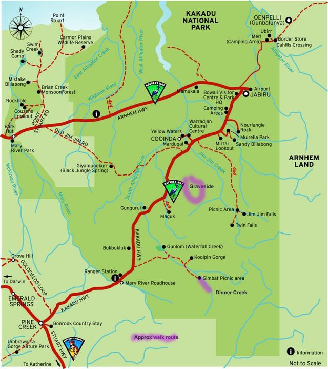 Dinner Creek is one of the few areas in Kakadu where it is possible to do interesting one-day loop walks. One of these loops will bring us to a high point from which we get some excellent views. The other brings us to one of the most interesting geological features in Kakadu, for some, a truly special place. No photo can possibly do it justice, which is why we do not publish one, either in our trip notes or on our website.