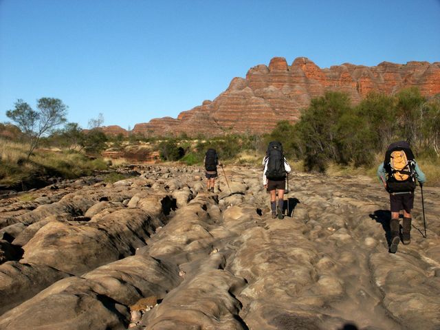 Drive to Keep River. Begin walk, carrying full packs. Bush camp.