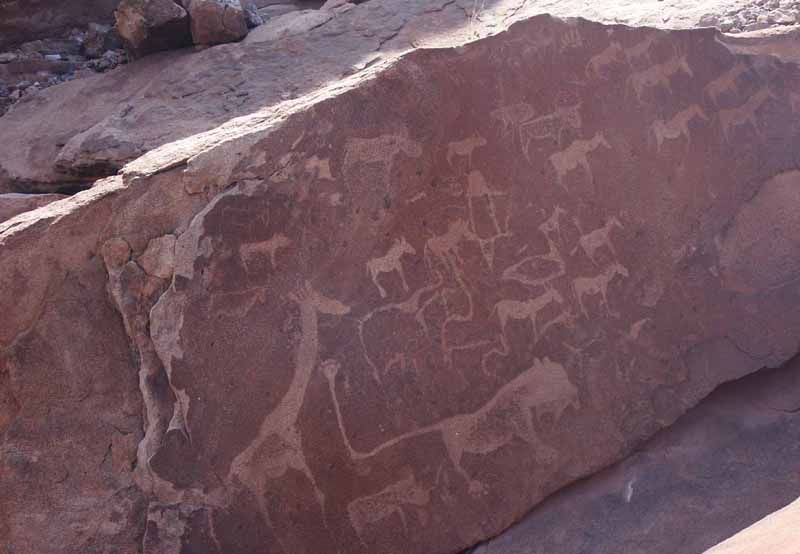 Returning south, there are a number of interesting rock art sites that we can visit at or near a place called Twyfelfontein. Good for a number of short walks. We may even do a three day hike on the Brandberg massif and visit the highest point in the country.