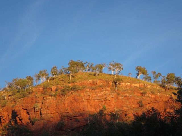 Varies from year to year depending on when last burnt. In May, most of the spear grass has finished seeding and dried out. Based on past experience, we expect some sections of thick scrub and or spinifex which will make some days much harder than others. There are always flowers in bloom.