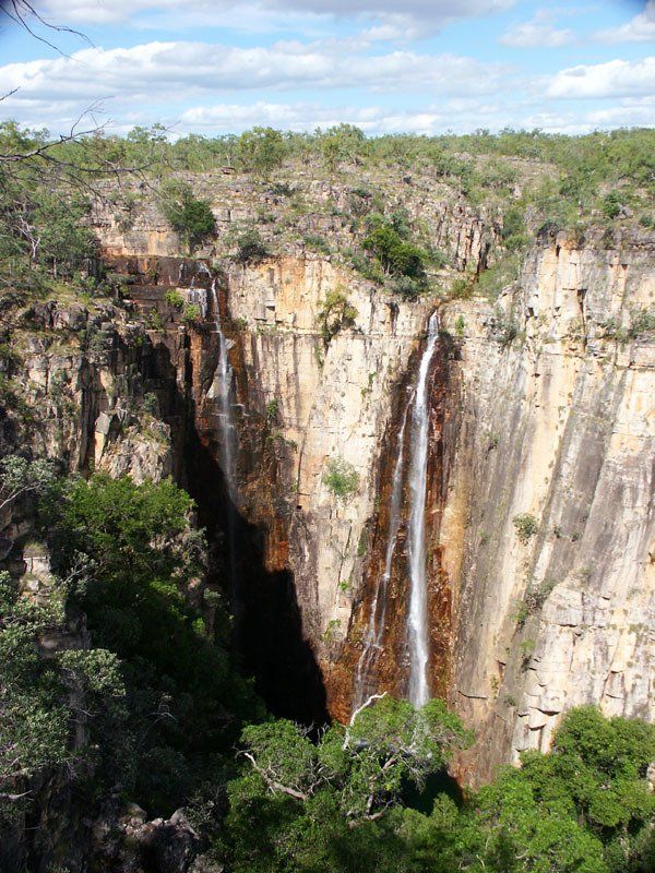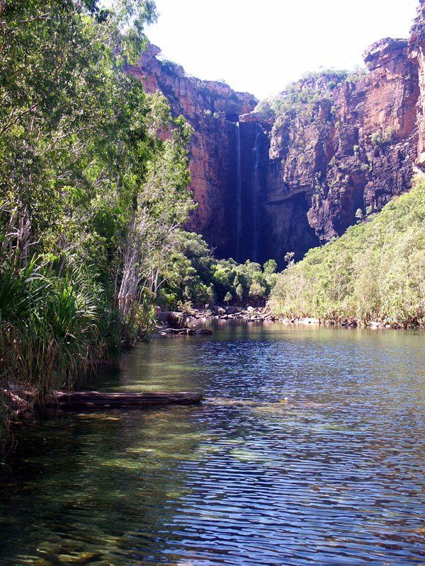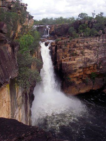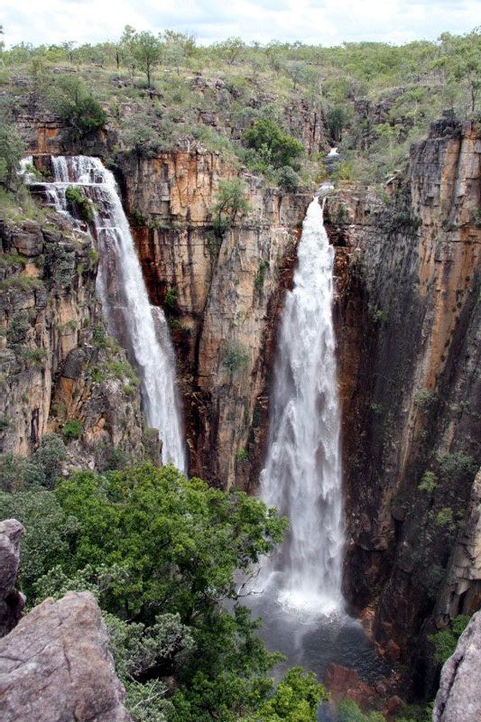The contrast between the Wet and the Dry is amazing. The four pictures are of Jim Jim Falls. The photo at right and first photo below are of the main falls, the first in January, the second in August. In January, we couldn't get to the point where the dry season photo was taken.