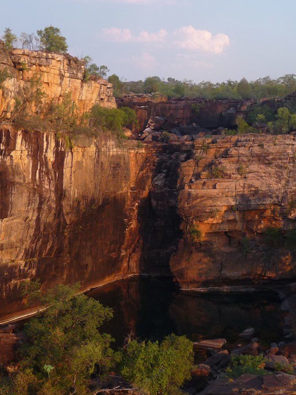 The second and third photo below are of the centre drop of Jim Jim Falls. Both were taken from approximately the same point — the first in January, the second in October. It's a lovely sunset, but not a drop is coming over the falls.