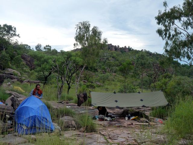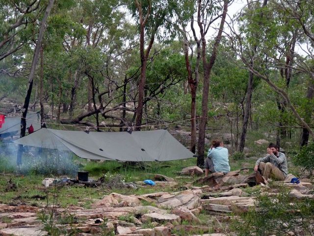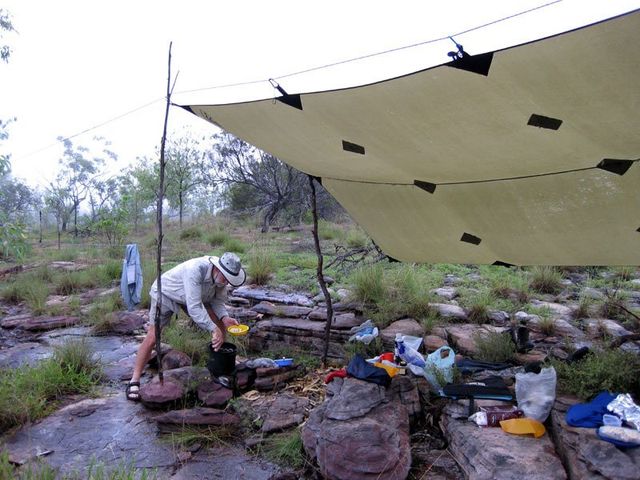 You can sit in the dry for dinner. You can put up you tent in the dry. The secret is our group fly, shown below on two different Kakadu trips in January.