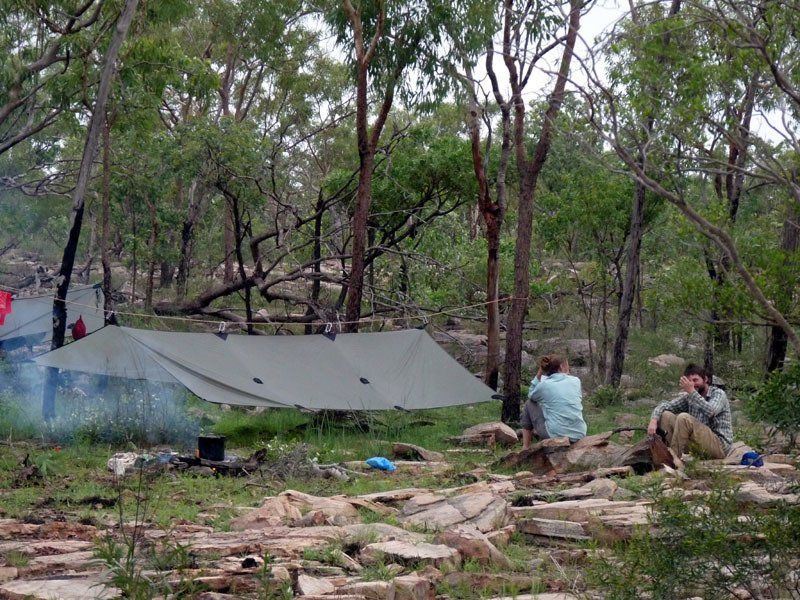 You can sit in the dry for dinner. You can put up you tent in the dry. The secret is our group fly, shown below on two different Kakadu trips in January.