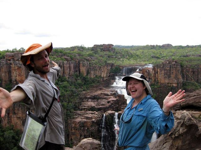 Look at the waterfall picture at right, taken in January. Everything is lush and green. The waterfall is flowing well. If you come in the middle or late dry season and most of the green will be gone. The waterfall will have dropped to a trickle. The picture doesn't show that we have Koolpin Gorge to ourselves. In the dry season, we would be sharing it with others — sometimes with many others.